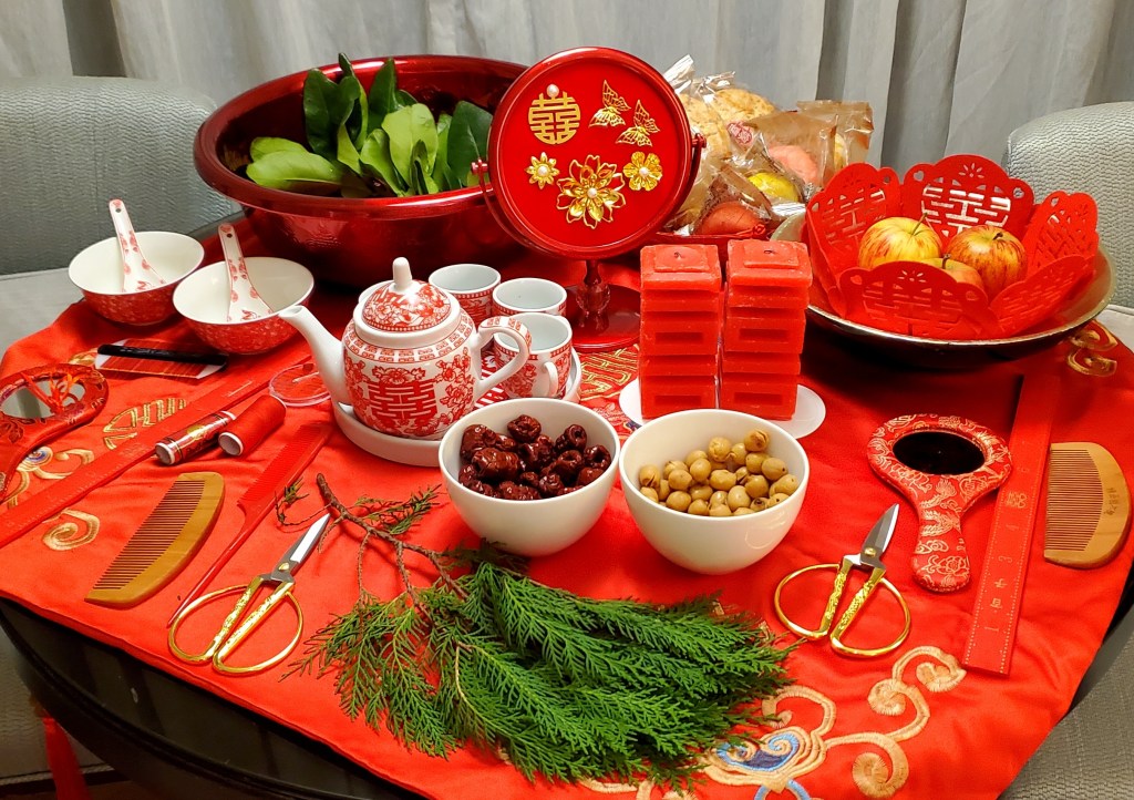 Happy and delighted that our good friends could help us with our Chinese hair combing ritual. Our Auspicious Lady, Jules; Blessed Man, Dave; Selen, Maid of Honour, Joe; and Aisle Partner, Pak Kin; helped decorate and prepare materials for the occasion. Thank you for being a good sport and reciting the blessings in Putonghua! It was great fun for us all!